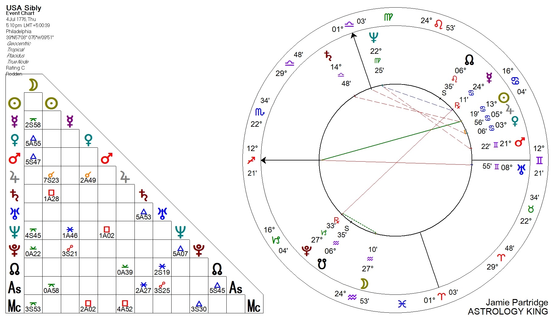 The Uranus return in a national horoscope promotes individualism, freedom, choice, independence and humanitarianism. Threats to these liberties give rise to competing ideologies with the right versus the left, Republican versus Democrat, free-market versus protectionism, fascism versus communism.