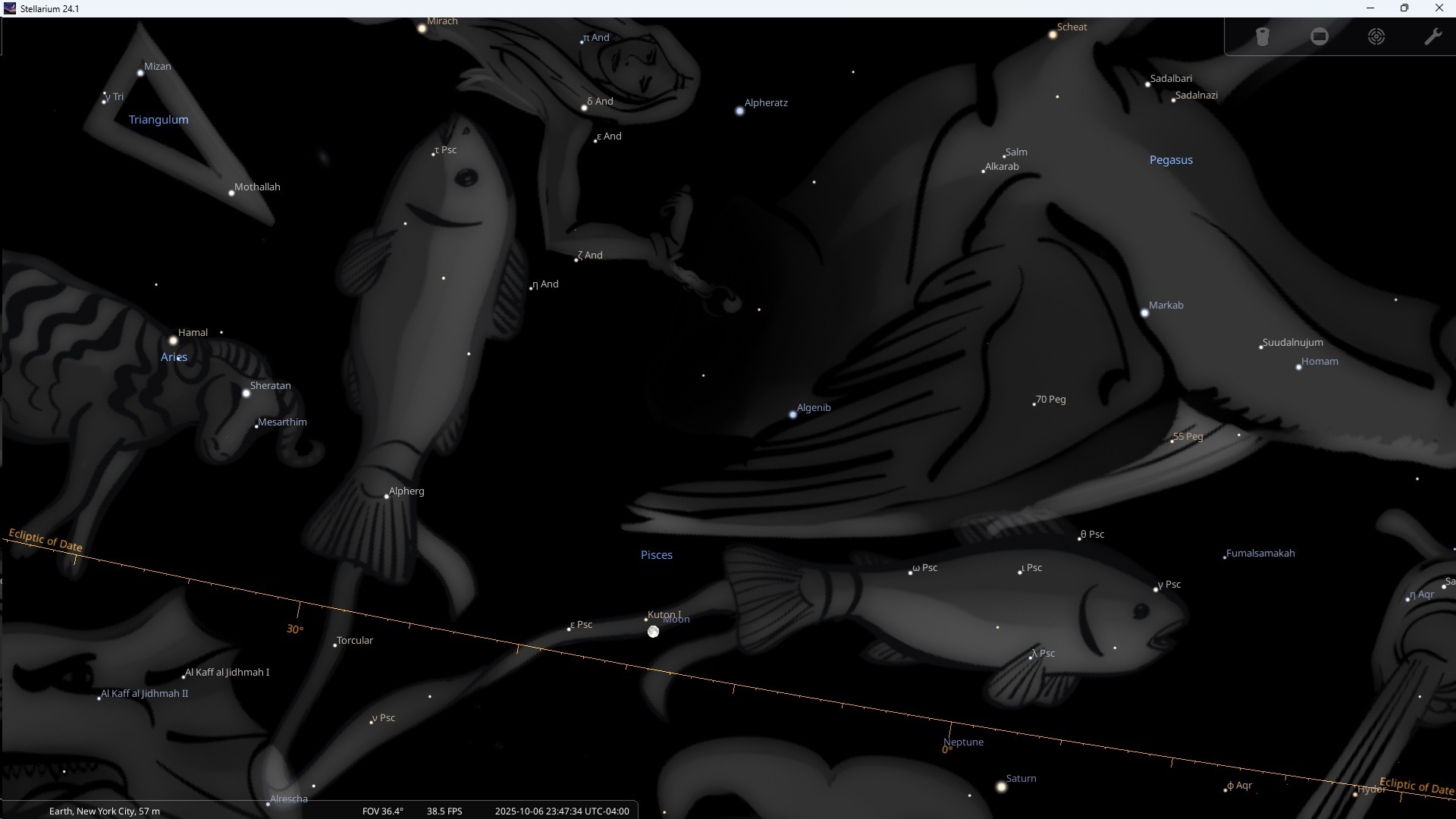 The October 2025 full moon is in the Sign of Aries, but due to the precession of the equinoxes, it is in the Constellation of Pisces. Yet the closest astrological star to the October 6 full moon belongs to the Constellation Andromeda, the Chained Woman.