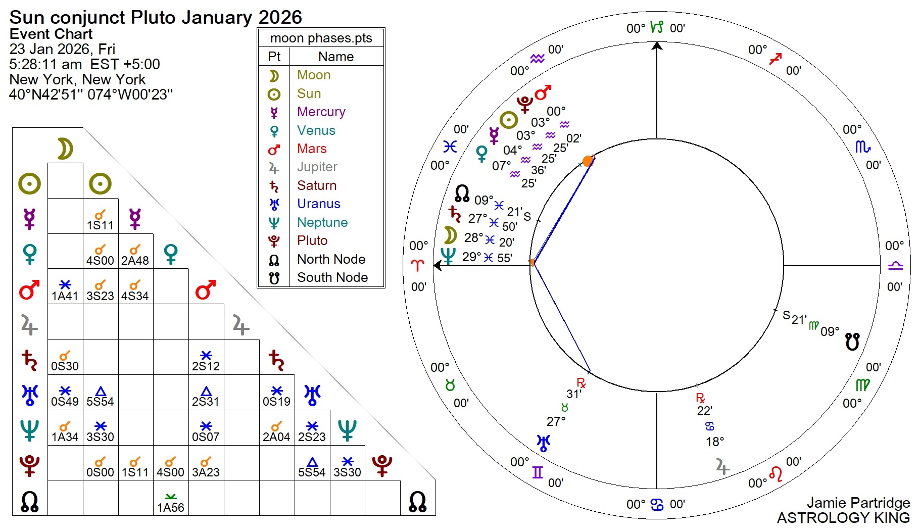Jan 23, 05:28 am – Sun conjunct Pluto 03♒25
