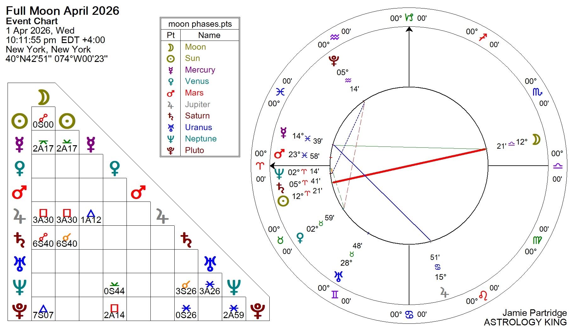 - Apr 01, 10:11 pm – Full Moon April 2026 at 12♎21.
