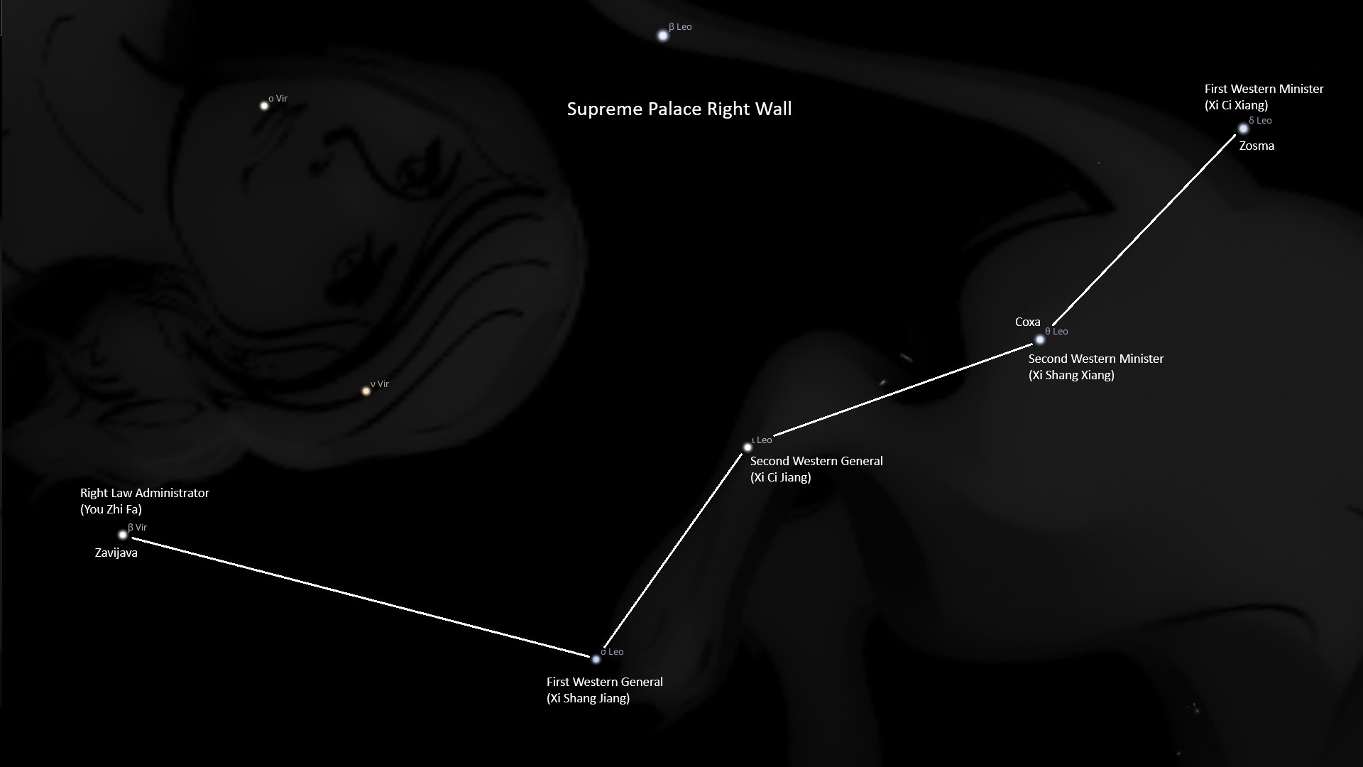 | 5 | δ Leo, Zosma | Xi Shang Xiang | First Western Minister | Western Chancellor |